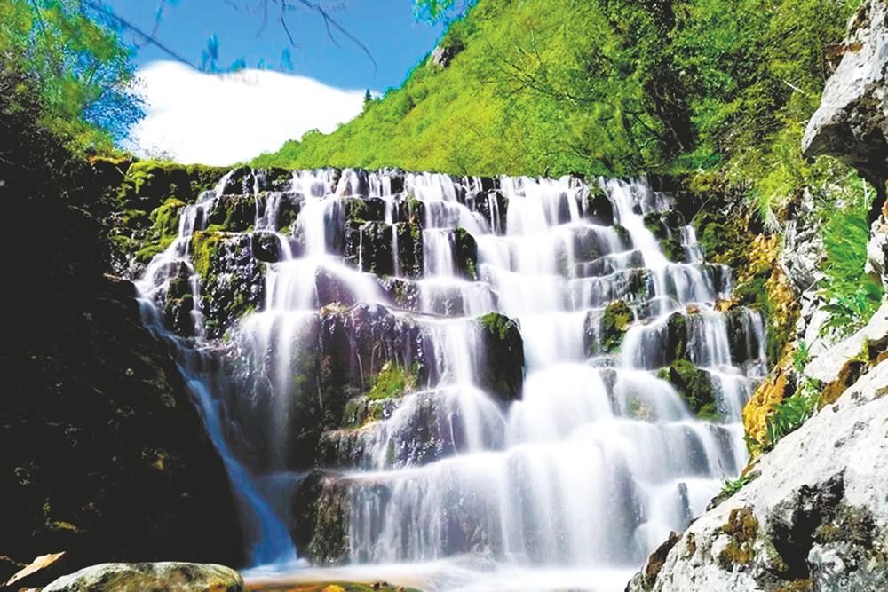 盛夏,從被金黃油菜花和綠油油的麥苗環繞的村莊,行駛到奇絕雋秀的高山峽谷,沿途群山涌翠、花木繁茂,古木參天、芳香馥郁、鳥語花香,美景讓人賞心悅目;野兔、馬鹿、馬雞等野生動物出沒于河畔叢林,讓人感到野趣十足;達坂紅葉、十二生肖盤、神龍潭瀑布、圣母天池、藥水泉瀑布,讓人流連忘返;雪山、峽谷、奇峰、石林、角巖、懸崖、峭壁等地貌群,讓人心醉神迷,會有“車在路上行、人在畫中游”的驚艷,也會被“樹下有鮮花、花中有飛蝶,山巔云霧繞、溪澗有飛瀑”的大美所征服。