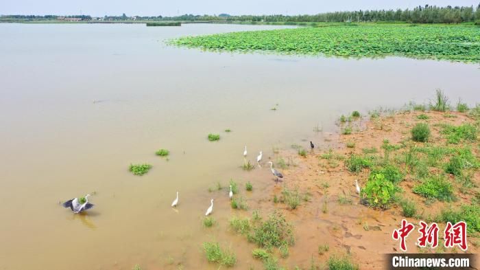 盛夏時節(jié),雨過天晴,美麗的南宮湖水波蕩漾,蒼鷺、白鷺、綠頭鴨等鳥類在此翔集,棲息覓食。河北省南宮市的南宮湖濕地公園,擁有3000多畝水面和52公里內外環(huán)水系,是河北南部依傍縣城最大的人工湖。近年,當?shù)貙嵤┠蠈m湖水生態(tài)修復工程,昔日“藏污納垢,蚊蠅亂飛”的舊坑塘成為水清、岸綠、景美的生態(tài)湖、景觀湖。