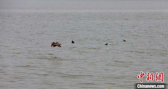 鳥兒在南宮湖濕地公園嬉戲。 田威 攝