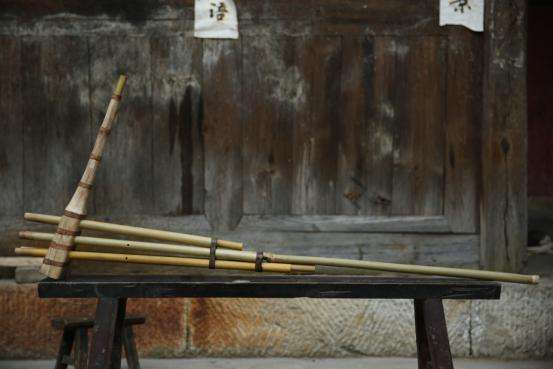 共鳴管:是套在笙管上端的一截竹管,可使音量明顯增大,多使用毛竹制作,依音高不同而異,以c、c1、c2三音為例,管長分別為60厘米、30厘米、15厘米,余者類推。以上所述為黔東南地區(qū)的苗族蘆笙;在黔中、黔南和黔西北,則流行著另一種形制的蘆笙,笙管用白竹或筍殼竹制作,下端管口不堵塞。上端用兩道竹篾箍緊,笙斗制作時中間不剖開,而是從粗端挖起,直通細(xì)端吹口部位,然后用圓木塞把粗端開口堵嚴(yán),再用數(shù)道化篙皮箍住。