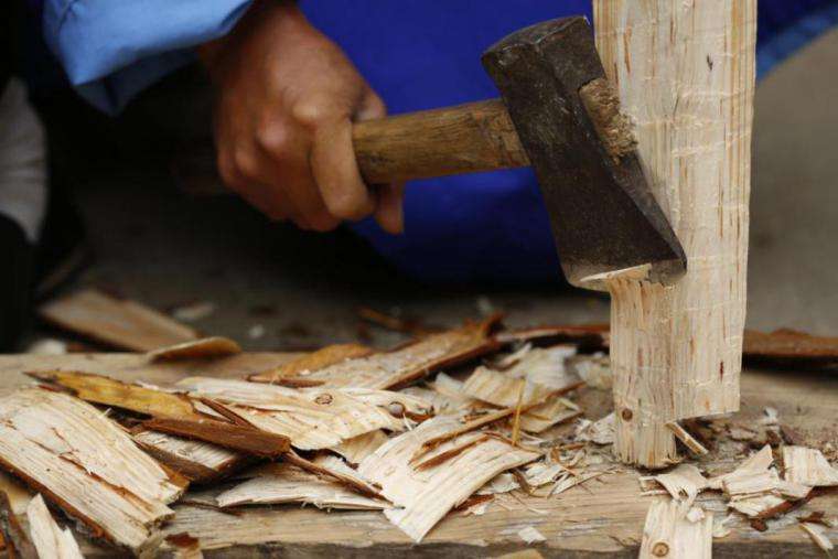 最難的是敲打簧片、割簧片、校單音、校和音這四個程序,最細(xì)致,最需要掌握的就是割簧片。把竹管的聲音和簧片的聲音全部調(diào)成一致,然后還要校正聲音。把單音校好以后還有雙管的,如果不把聲音校準(zhǔn),雙管就會和不起來,吹起來也不好聽,就不能用。