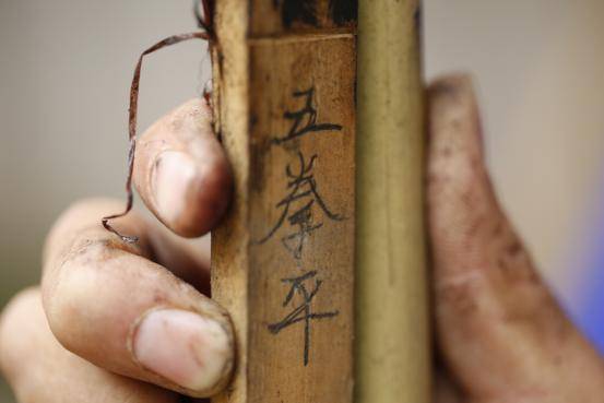 制作蘆笙大的工序有12道,再細(xì)一點(diǎn)有幾十項(xiàng)。如第一道是到山上去選竹子,拿尺子慢慢比劃,三拳的有多長,要很細(xì)心地選,確實(shí)可以用。取下來之后,第二道工序是拿到河邊去洗,用紗布搓。因?yàn)橹窆苡泻芏喟唿c(diǎn),關(guān)節(jié)處有很多毛,要很細(xì)致的把那些東西全搓掉。弄好之后用太陽曬,曬干曬白。第三道工序,就是取杉樹的木頭做笙斗,計(jì)劃好做三拳的是多少公分,四拳是多少公分。十二道工序,后面越學(xué)越復(fù)雜,每一道工序都很講究。