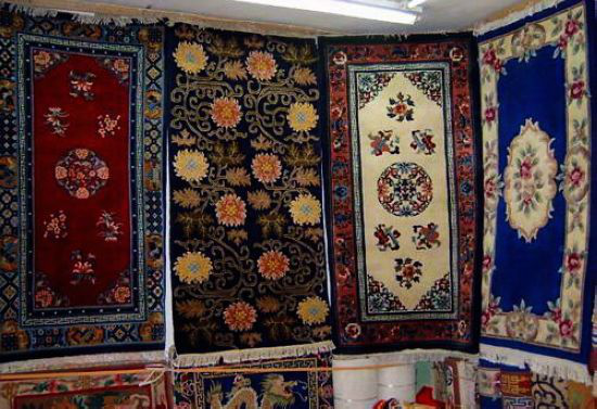 藏毯主要指“薩墊”(地毯)和“卡墊”(墊褥)。日喀則地區江孜縣是西藏著名的地毯之鄉,與土耳其地毯、波斯地毯并稱為世界三大名毯。江孜卡墊最為出名,是在“旺丹仲絲”的傳統技藝基礎上衍變發展起來的,它的穿桿結扣法,在全國乃至世界地毯織造技術中獨樹一幟,其織法、色彩以及紋樣等方面也獨具特色,因此江孜也被譽為“卡墊之鄉”。