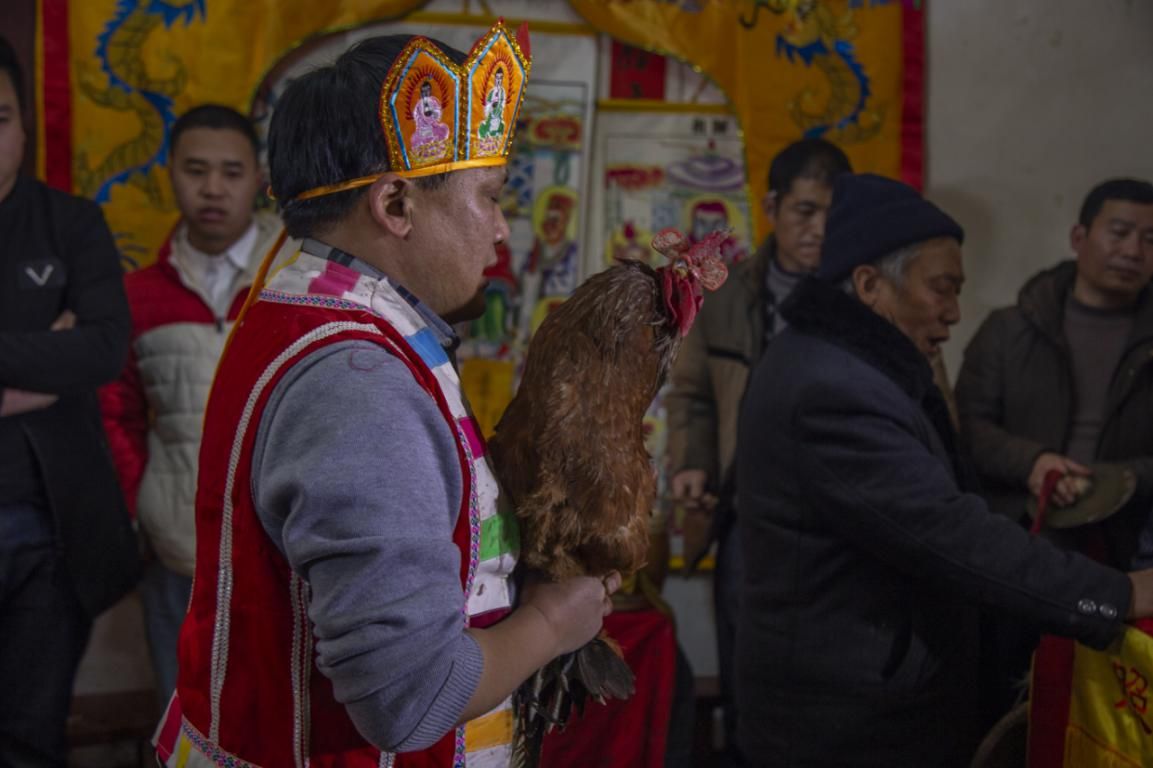 發牒還需使用雞冠之血,祭左邊三觀,右邊歷代祖師,中間總尊以及供桌下面的五猖,將雞血和雞毛貼在神案五猖神牌上和文書上。